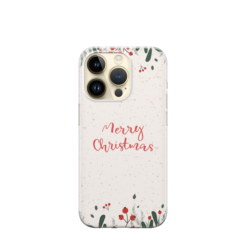 iPhone 14 Pro Max Gummi Hülle Fröhliche Weihnachten 1 - Beige