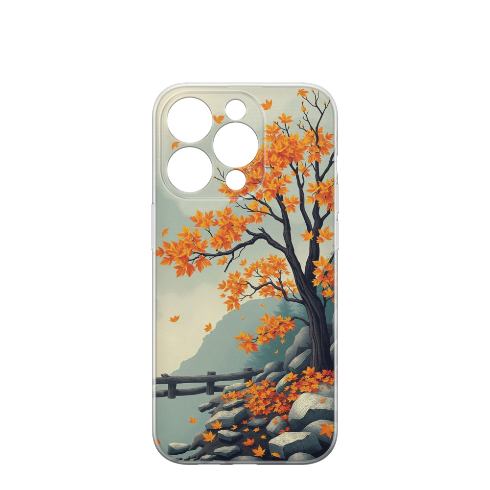 iPhone 14 Pro Max Gummi Hülle Herbstliche Felsen - Orange