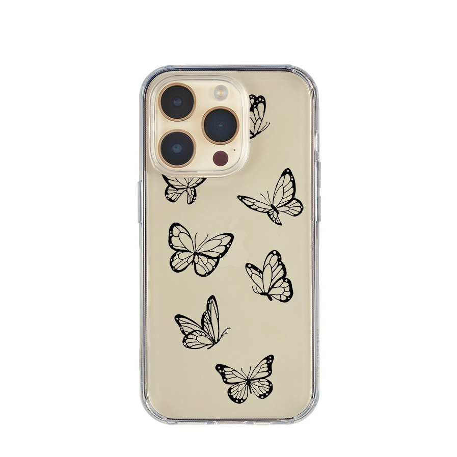 iPhone 14 Pro Max Gummi Case Hülle Ultra Thin Butterflies - Transparent