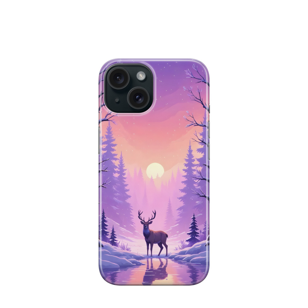 iPhone 15 Gummi Hülle Hirsch im Abendrot - Violet
