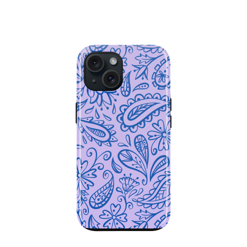 iPhone 15 Hybrid (Kunststoff / Gummi) Hülle Lavender Paisley - Lila-Violett