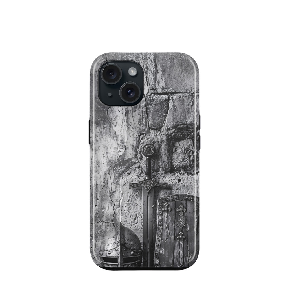 iPhone 15 Hybrid (Kunststoff / Gummi) Hülle Sword & Shield - Grau