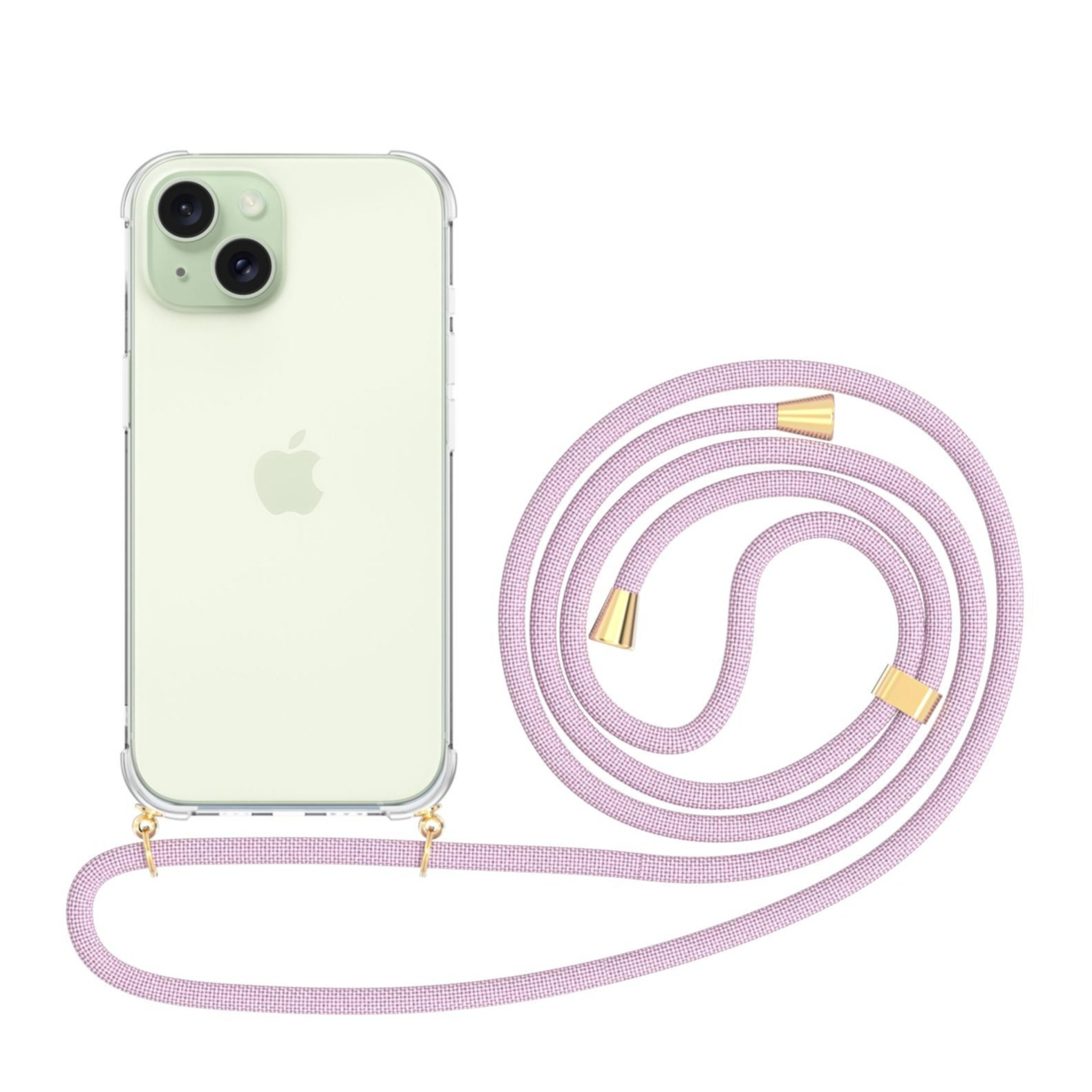 iPhone 15 Necklace Gummi Hülle Air Cushion Fallschutz + Handykette (150cm) - Roségold / Gold