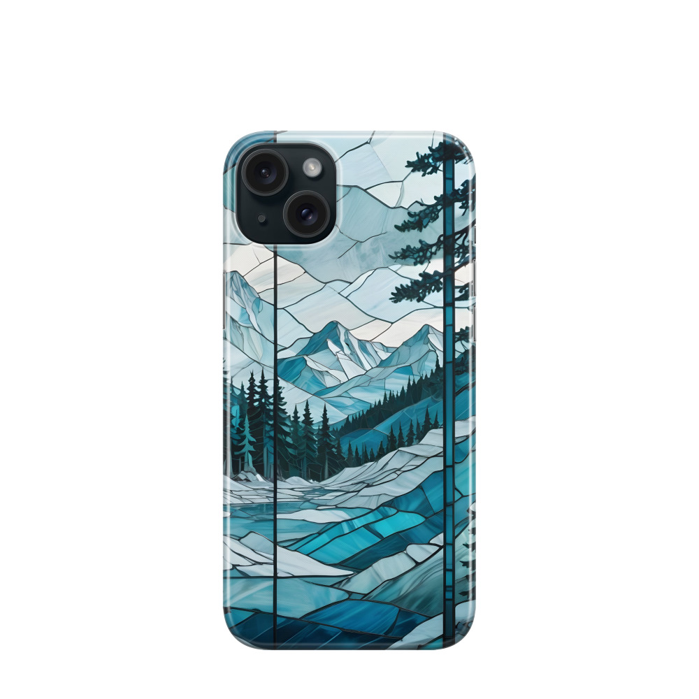iPhone 15 Plus Gummi Hülle Glasiger Winterwald - Blau