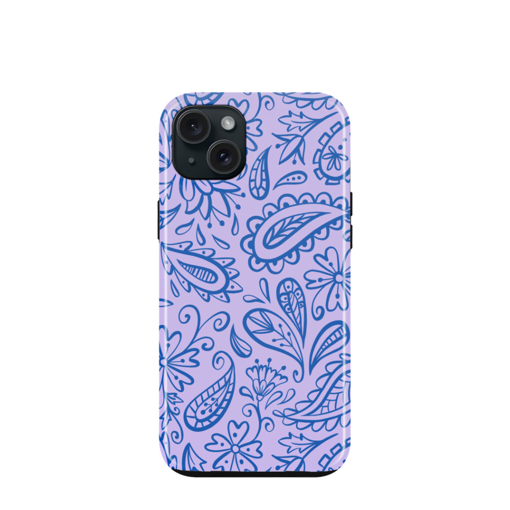 iPhone 15 Plus Hybrid (Kunststoff / Gummi) Hülle Lavender Paisley - Lila-Violett