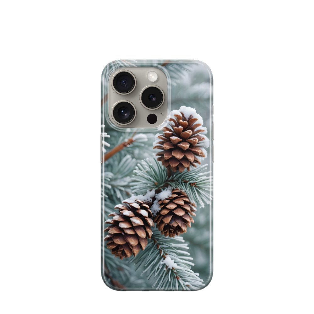 iPhone 15 Pro Gummi Hülle Frostige Kiefernträume - Braun