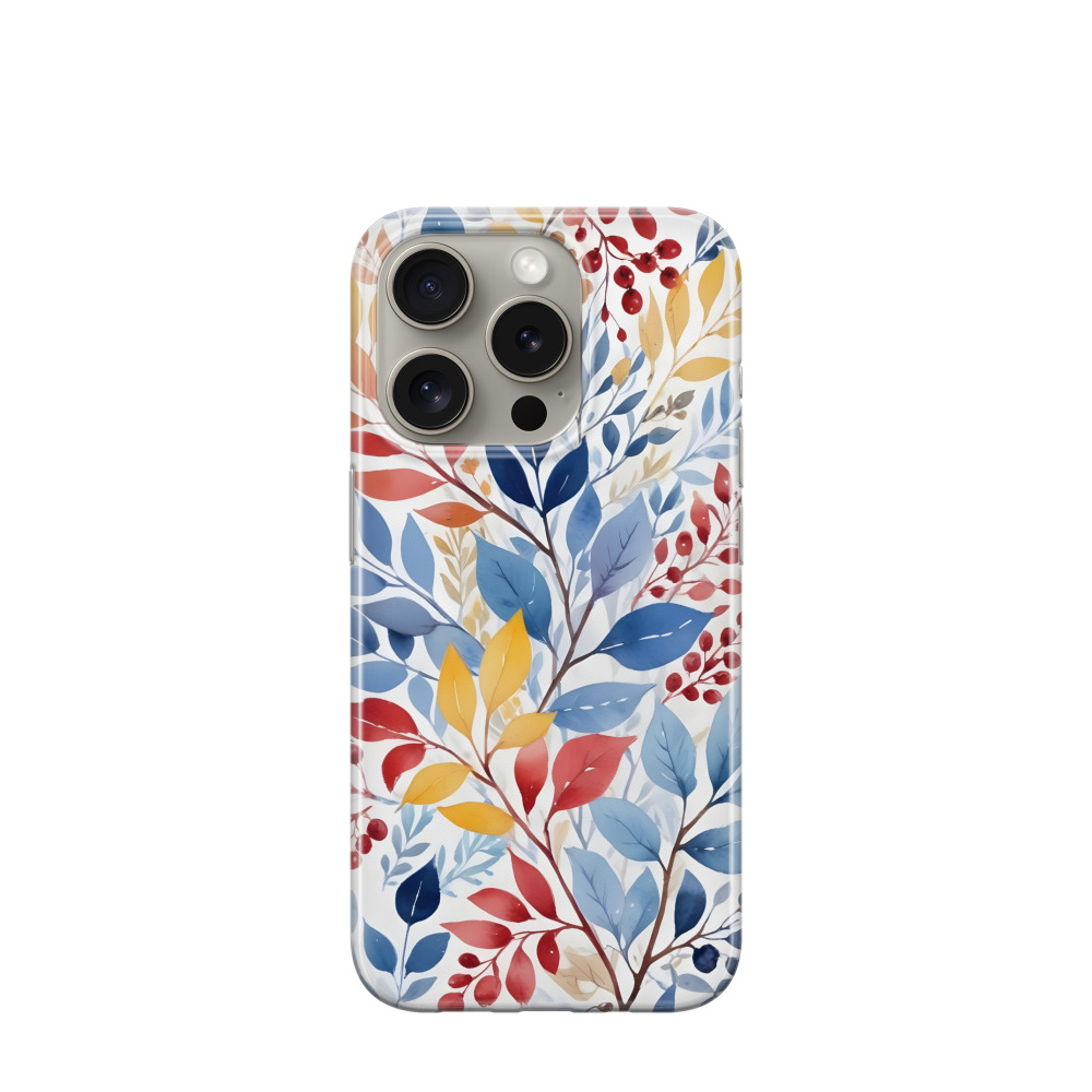 iPhone 15 Pro Gummi Hülle Frostiger Blättertanz - Blau / Gelb / Rot