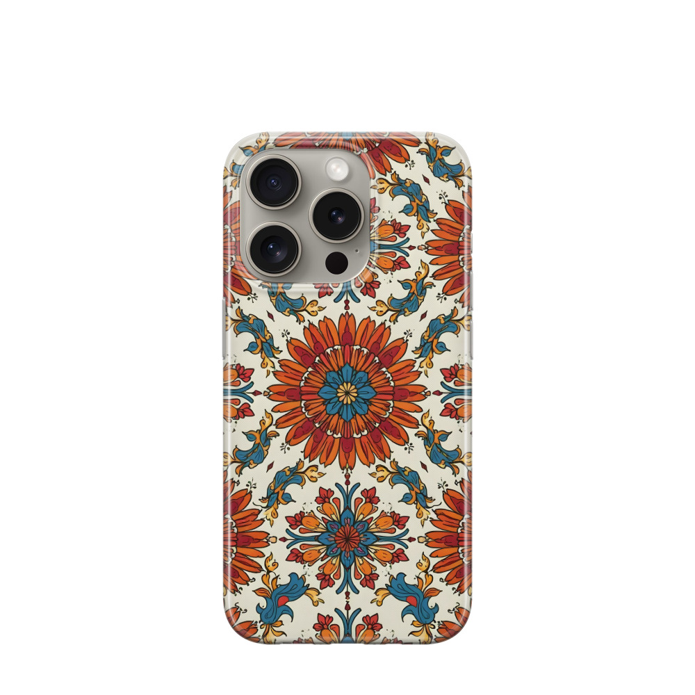 iPhone 15 Pro Gummi Hülle Majolika-Goldranken - Braun