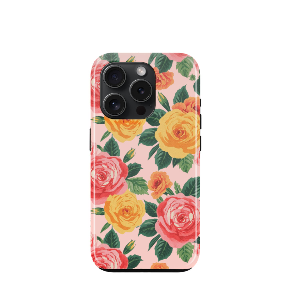 iPhone 15 Pro Hybrid (Kunststoff / Gummi) Hülle Cottage Garden - Pink