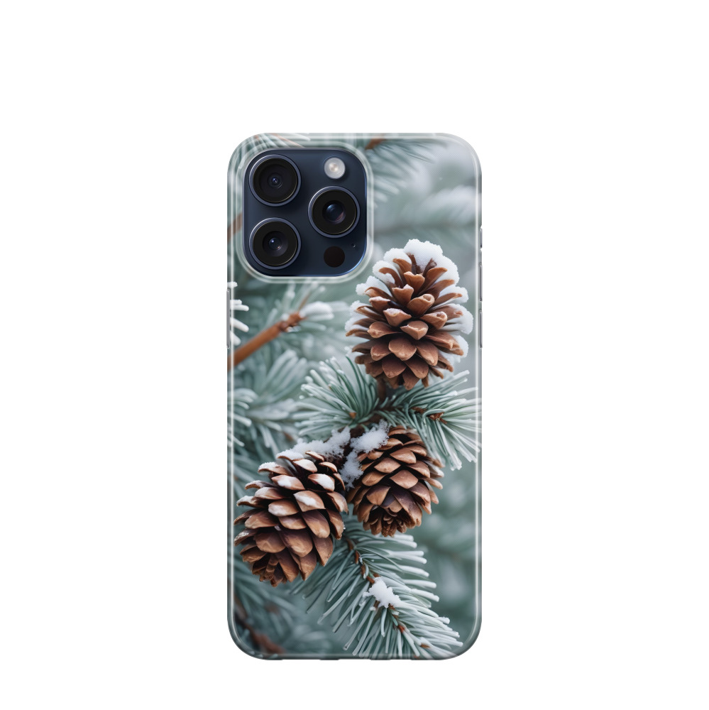 iPhone 15 Pro Max Gummi Hülle Frostige Kiefernträume - Braun