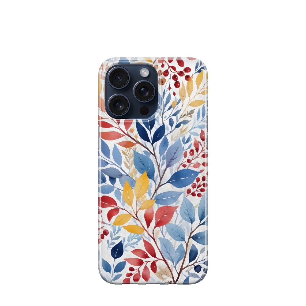 iPhone 15 Pro Max Gummi Hülle Frostiger Blättertanz - Blau / Gelb / Rot