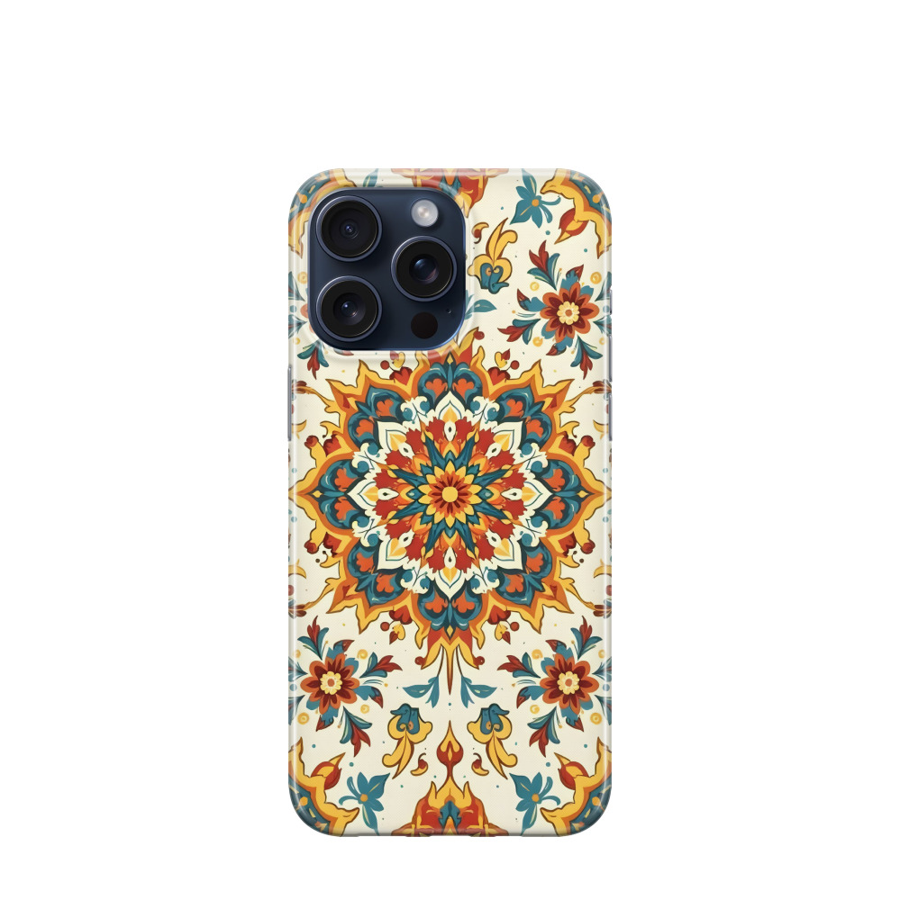iPhone 15 Pro Max Gummi Hülle Majolika-Königsblüte - Blau / Gelb / Rot