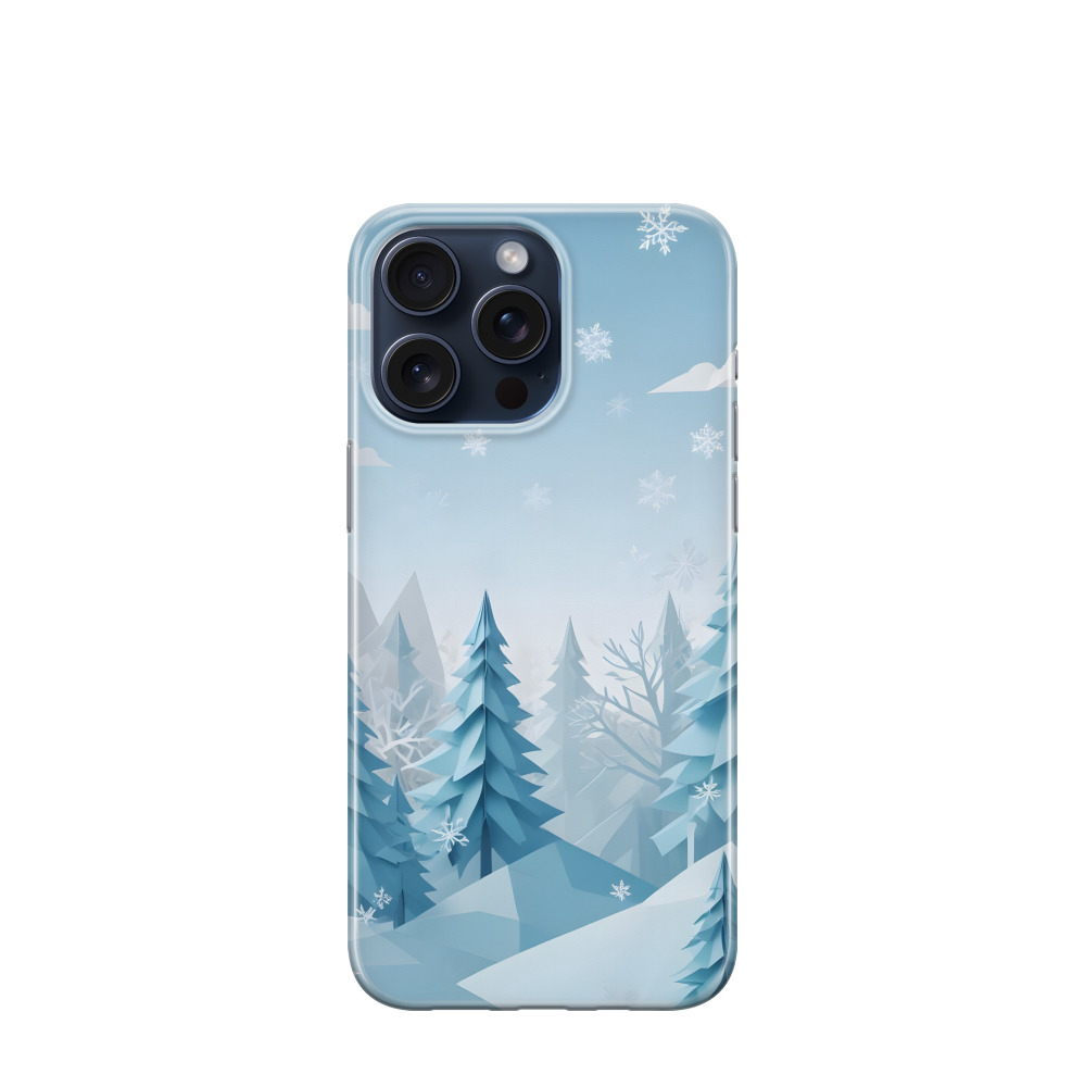 iPhone 15 Pro Max Gummi Hülle Schneewald - Blau