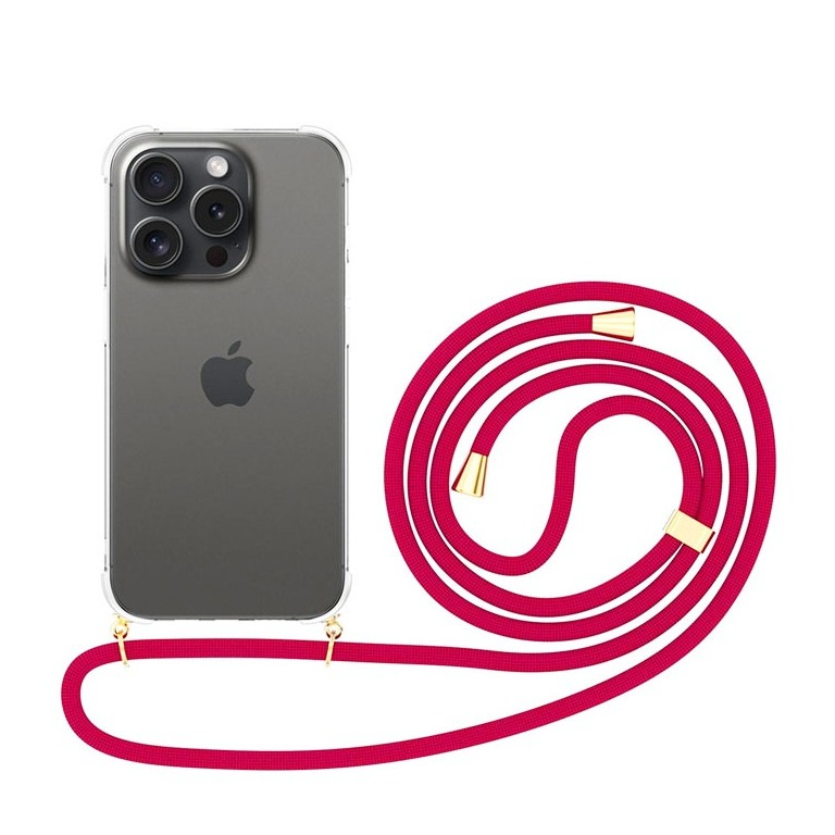 iPhone 15 Pro Necklace Gummi Hülle Air Cushion Fallschutz + Handykette (150cm) - Rot / Gold
