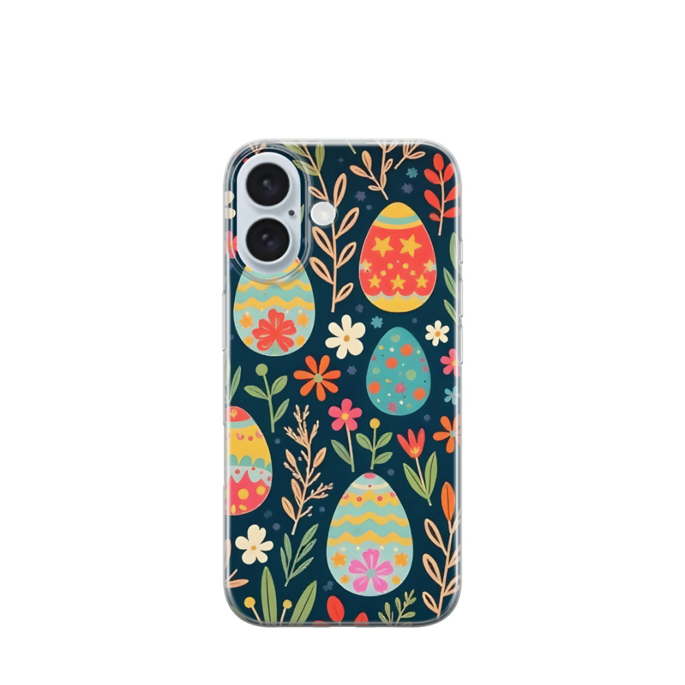 iPhone 16 Gummi Hülle Blütenzauber zu Ostern - Blau