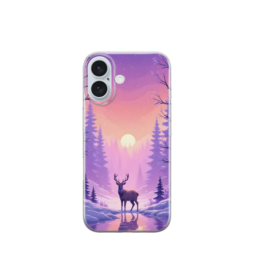 iPhone 16 Gummi Hülle Hirsch im Abendrot - Violet