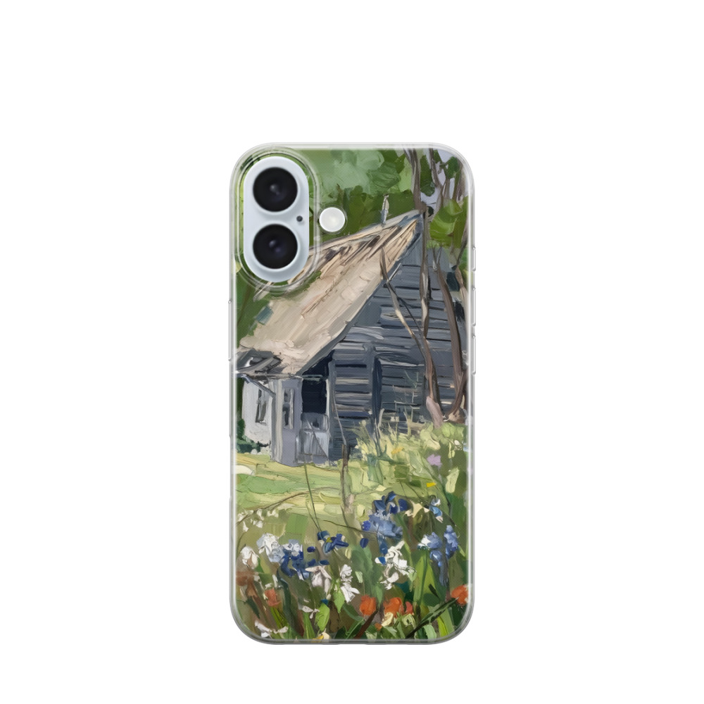 iPhone 16 Gummi Hülle Hütte im Grünen - Grün