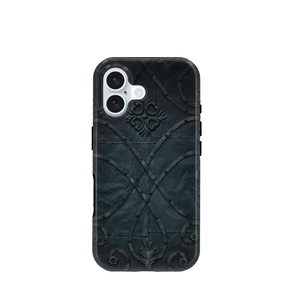 iPhone 16 Hybrid (Kunststoff / Gummi) Hülle Tracery - Schwarz
