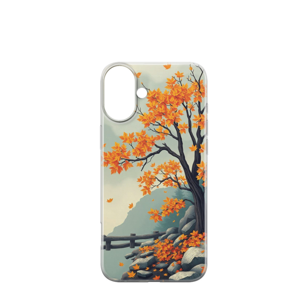 iPhone 16 Plus Gummi Hülle Herbstliche Felsen - Orange