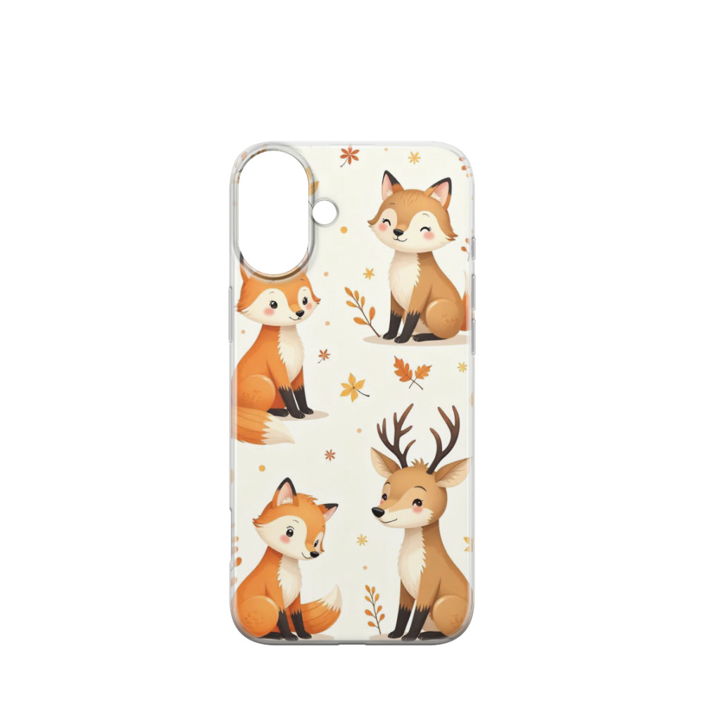 iPhone 16 Plus Gummi Hülle Herbstliche Waldbewohner - Orange