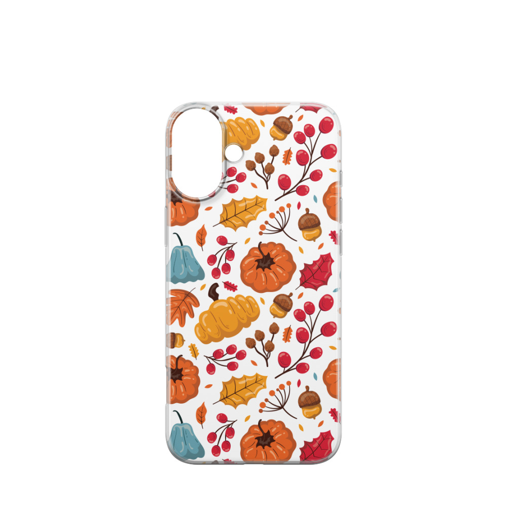 iPhone 16 Plus Gummi Hülle Laub und Kürbisse - Orange