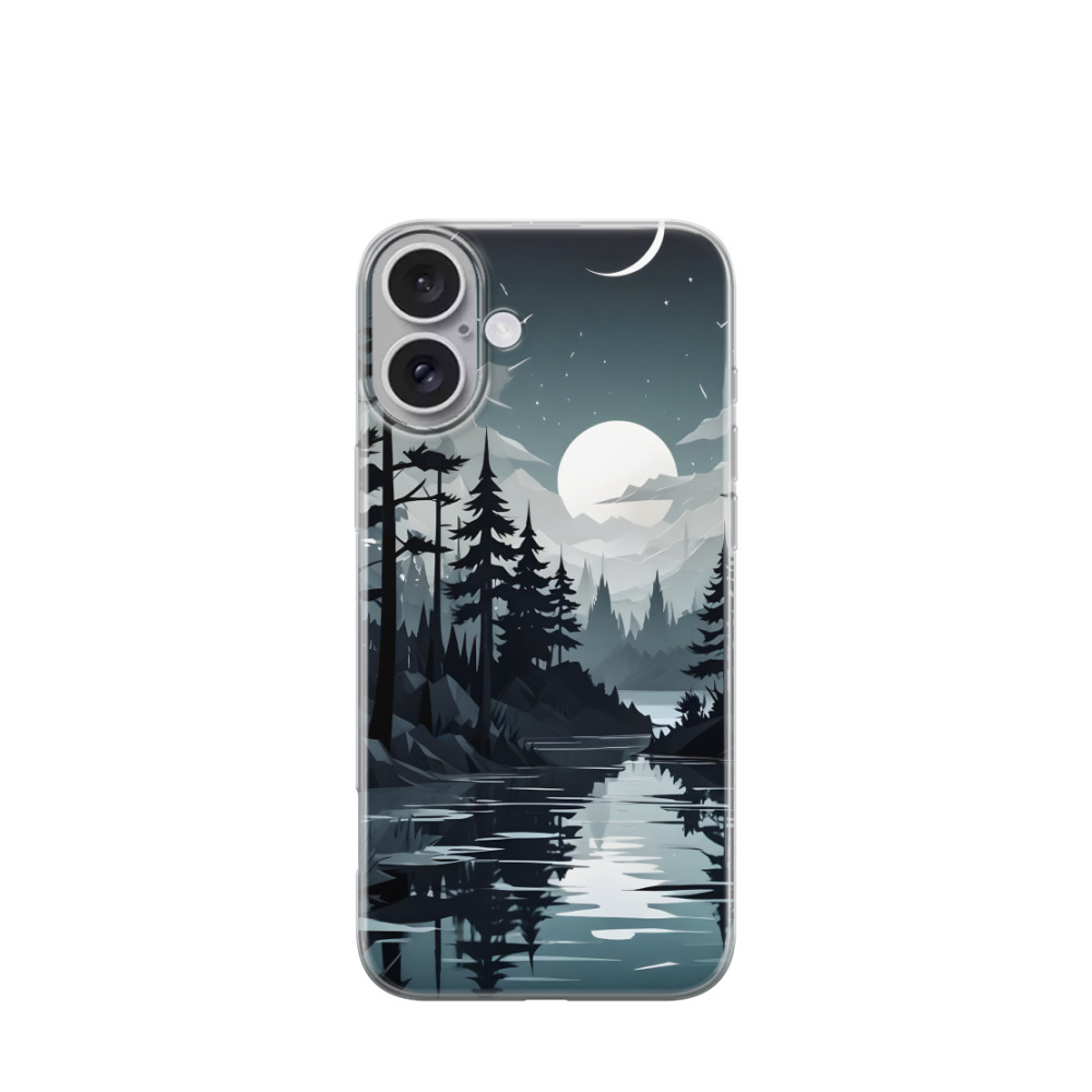 iPhone 16 Plus Gummi Hülle Mondschein und Schatten - Schwarz