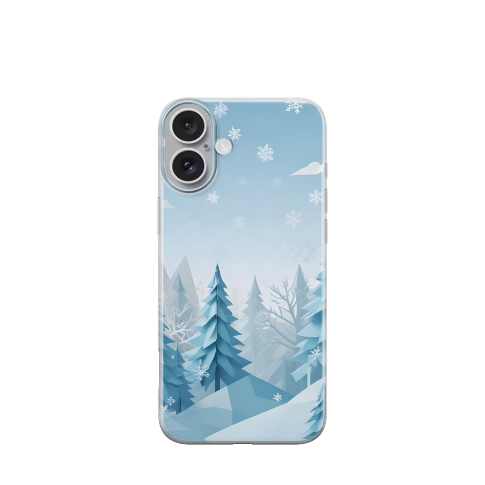 iPhone 16 Plus Gummi Hülle Schneewald - Blau