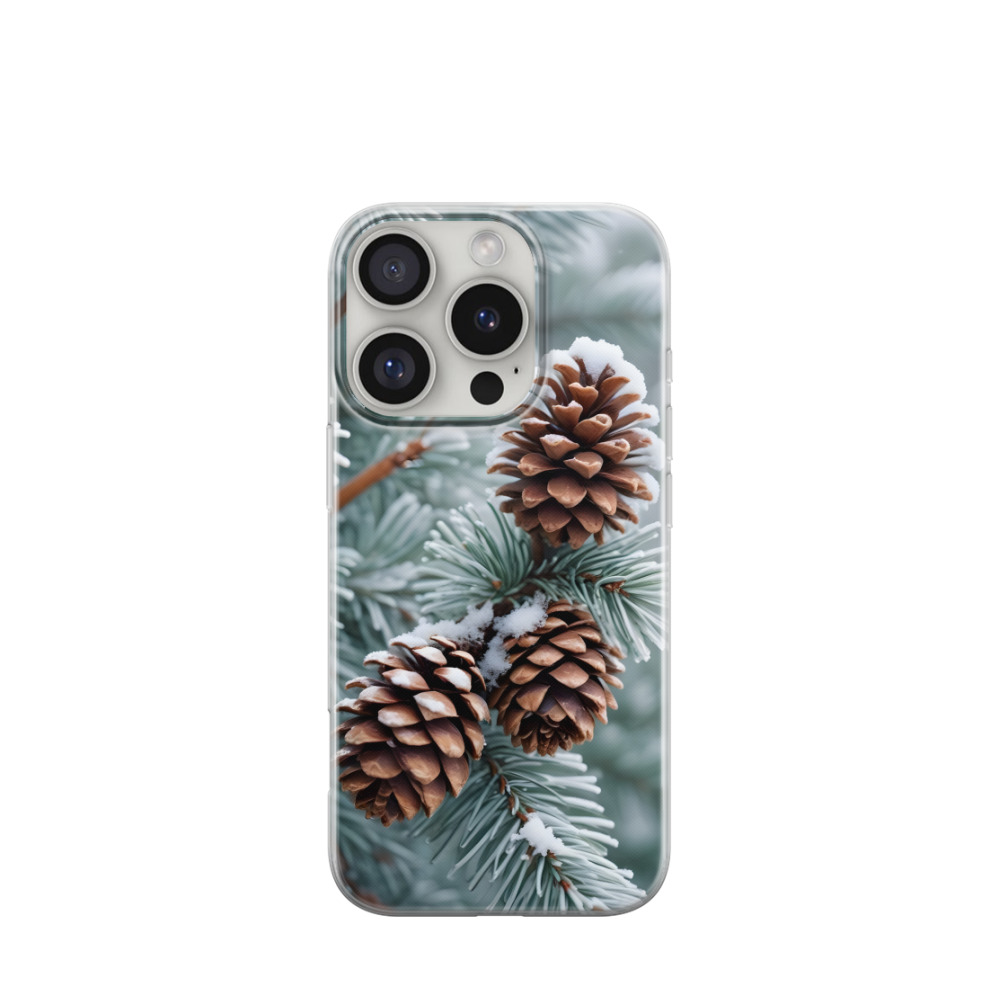 iPhone 16 Pro Gummi Hülle Frostige Kiefernträume - Braun