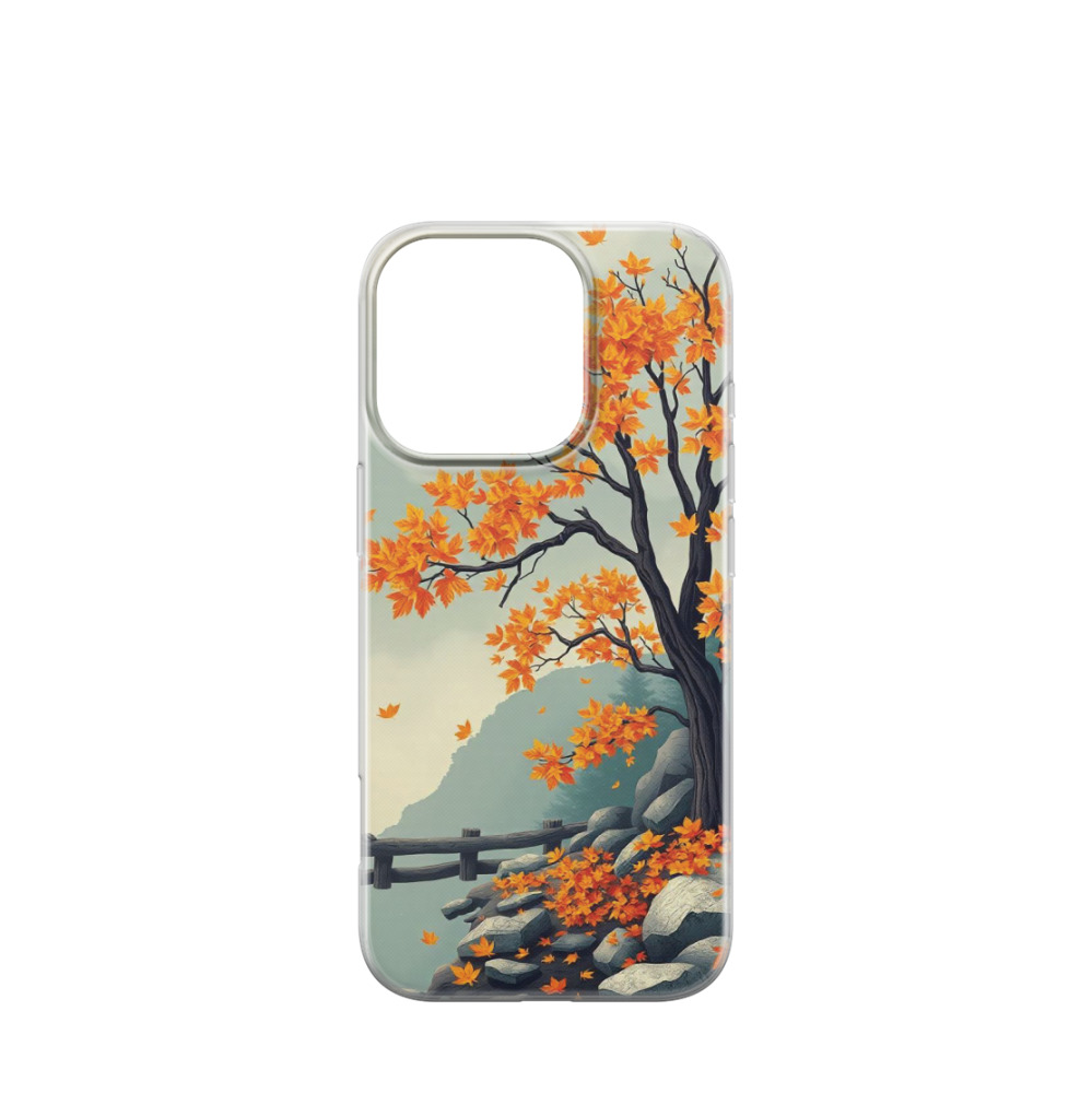 iPhone 16 Pro Gummi Hülle Herbstliche Felsen - Orange