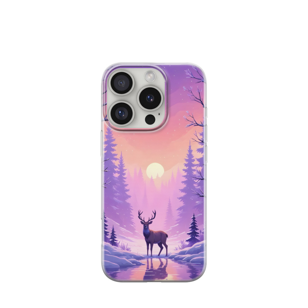 iPhone 16 Pro Gummi Hülle Hirsch im Abendrot - Violet