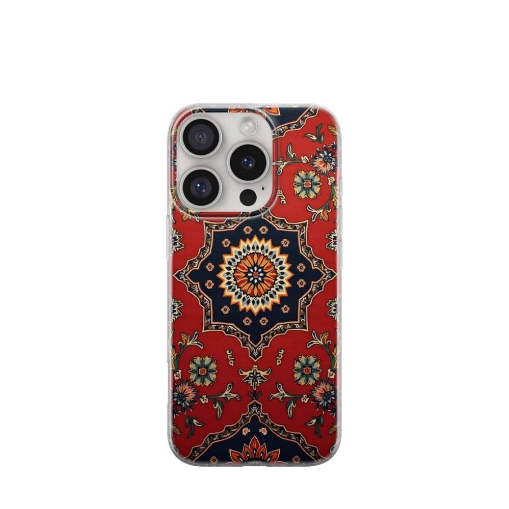 iPhone 16 Pro Gummi Hülle Persisches Teppich-Ornament - Rot