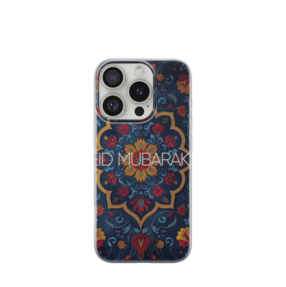 iPhone 16 Pro Gummi Hülle Ramadan Mandala 1 - Blau / Gelb / Rot