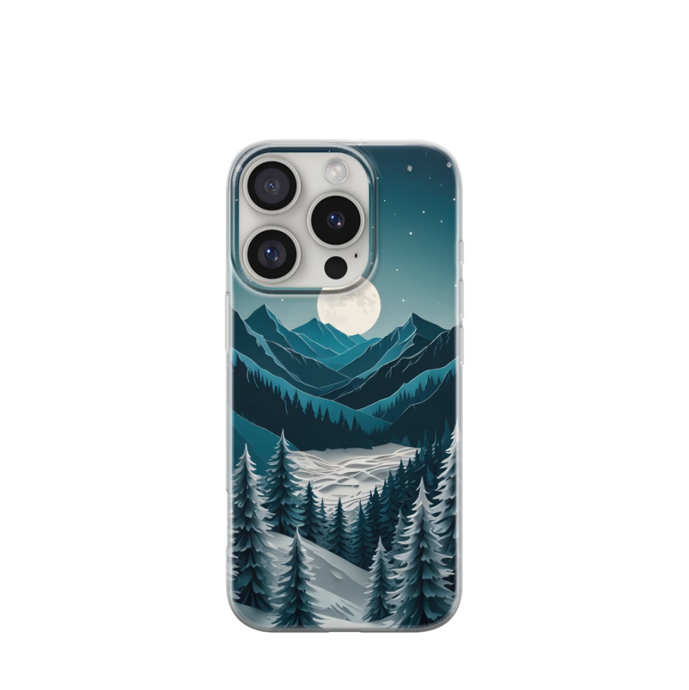 iPhone 16 Pro Gummi Hülle Winternacht in den Bergen - Schwarz