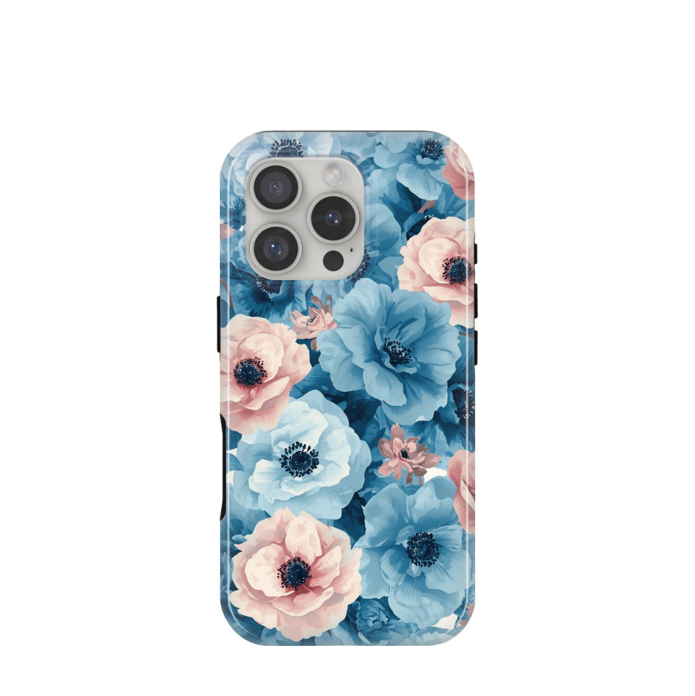 iPhone 16 Pro Hybrid (Kunststoff / Gummi) Hülle Hydrangea Sky - Blau