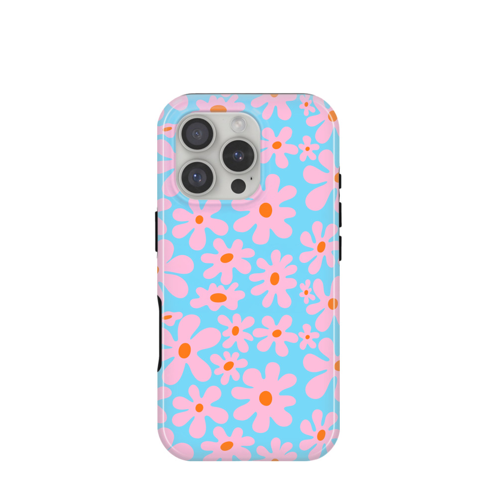 iPhone 16 Pro Hybrid (Kunststoff / Gummi) Hülle Soft Blue Petals - Rosa