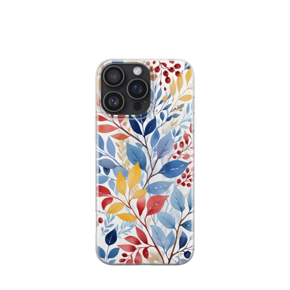 iPhone 16 Pro Max Gummi Hülle Frostiger Blättertanz - Blau / Gelb / Rot