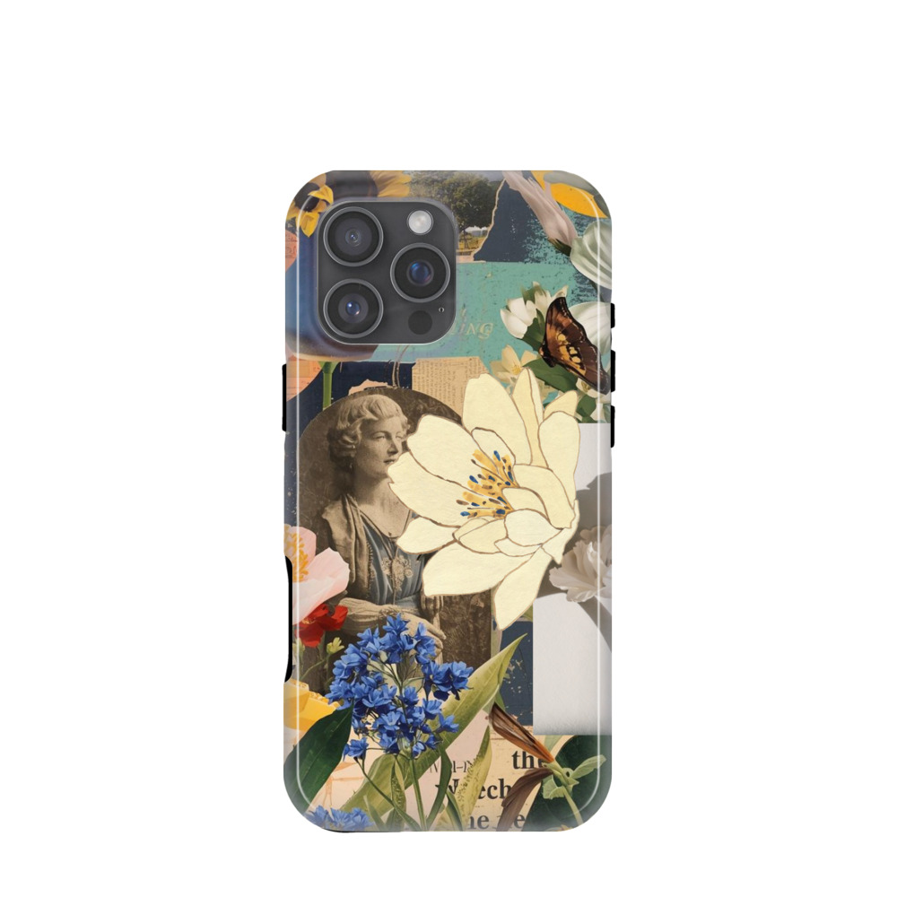 iPhone 16 Pro Max Hybrid (Kunststoff / Gummi) Hülle Floral Collage - Versch. Farben