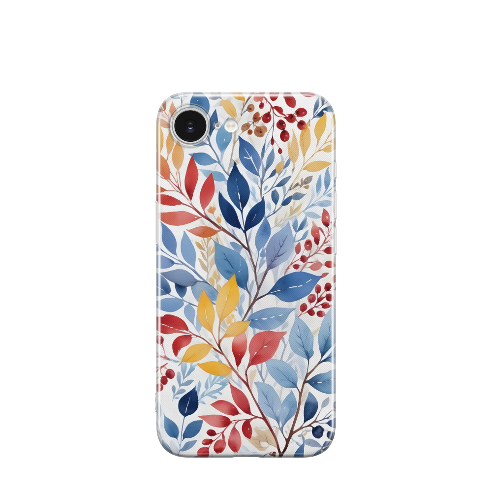 iPhone 16e Gummi Hülle Frostiger Blättertanz - Blau / Gelb / Rot