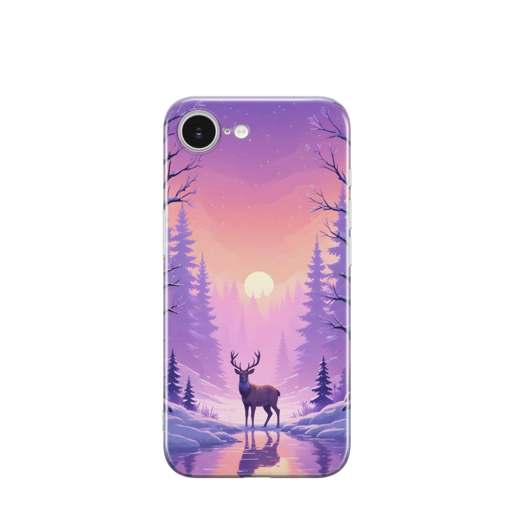 iPhone 16e Gummi Hülle Hirsch im Abendrot - Violet