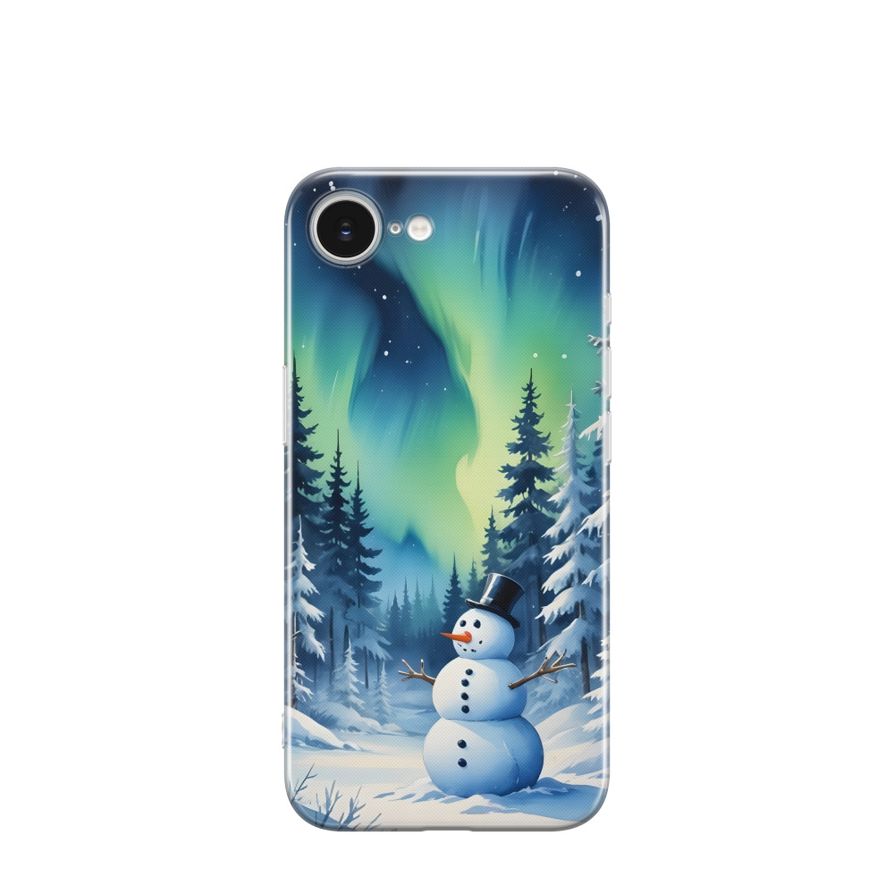 iPhone 16e Gummi Hülle Nordlicht Schneemann - Türkis