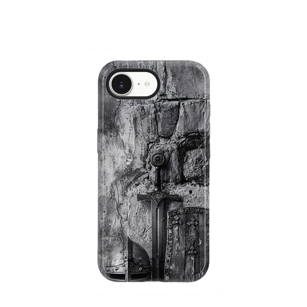 iPhone 16e Hybrid (Kunststoff / Gummi) Hülle Sword & Shield - Grau