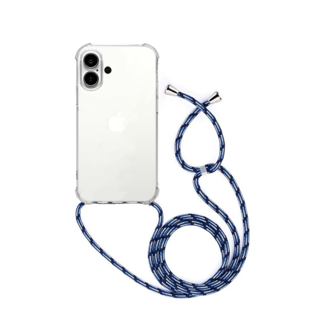 iPhone 17 Necklace Gummi Hülle Air Cushion Fallschutz + Handykette (150cm) - Blau / Silber