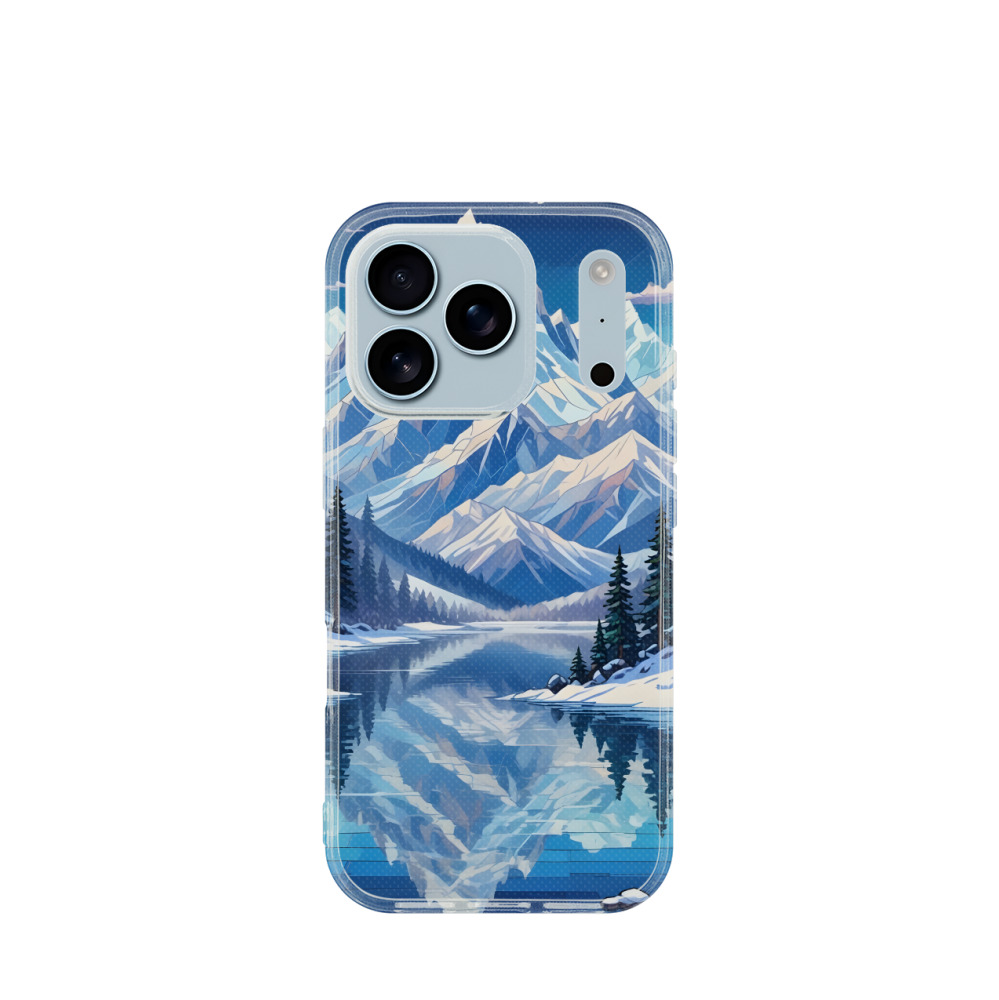 iPhone 17 Pro Gummi Hülle Bergzauber im Eissee - Blau