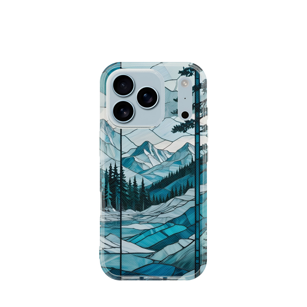 iPhone 17 Pro Gummi Hülle Glasiger Winterwald - Blau