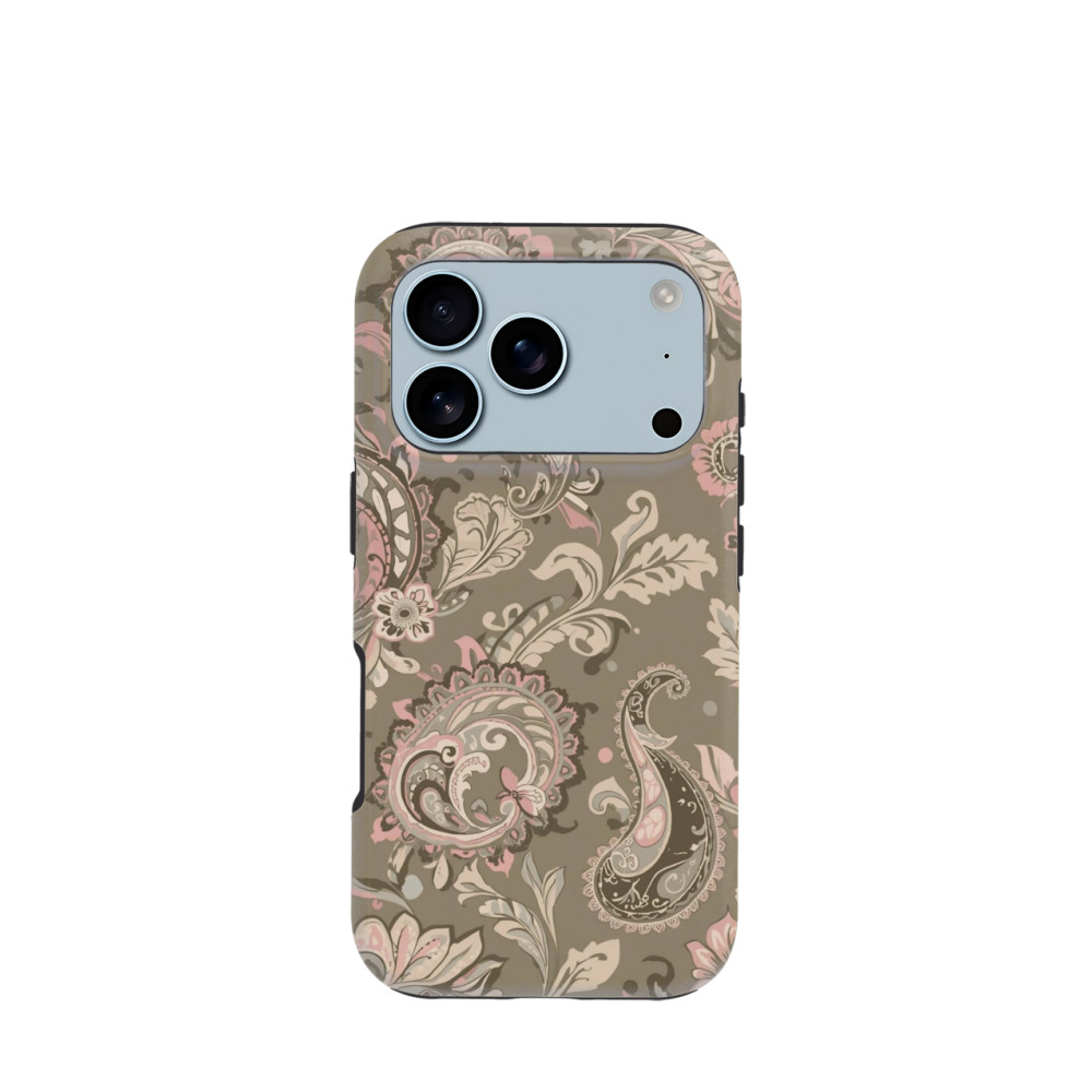 iPhone 17 Pro Hybrid (Kunststoff / Gummi) Hülle Sage Paisley - Braun