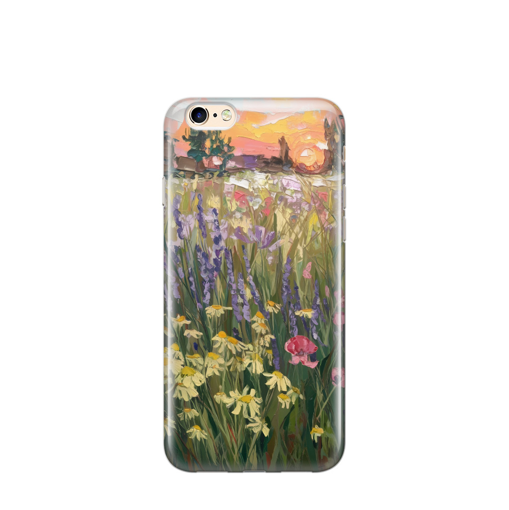 iPhone 6 Gummi Hülle Abendsonne über der Wiese - Grün