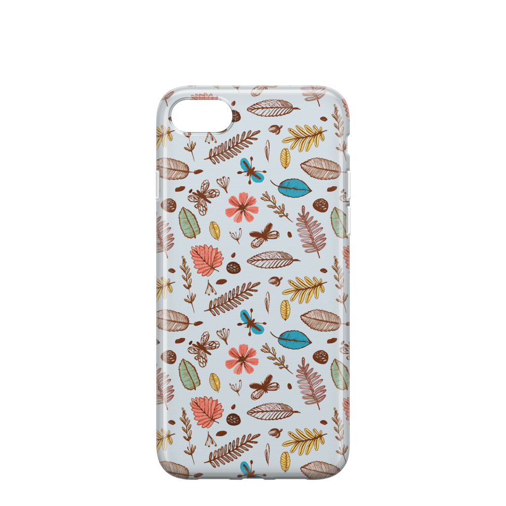 iPhone 7 Gummi Hülle Herbstblüten 03 - Blau / Gelb / Rot