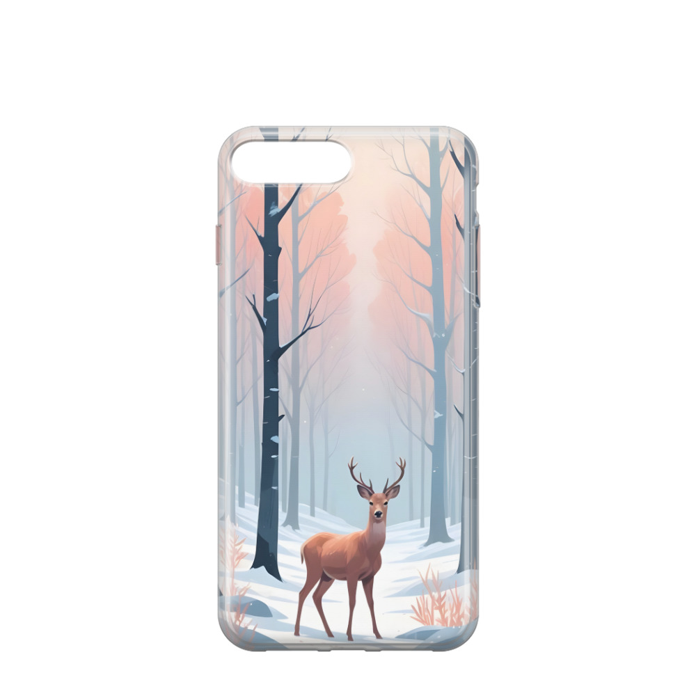 iPhone 7 Plus Gummi Hülle Hirsch im Morgennebel - Rosegold