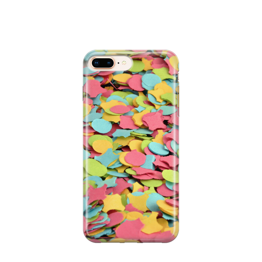 iPhone 7 Plus Gummi Hülle Konfettipracht - Blau / Gelb / Rot