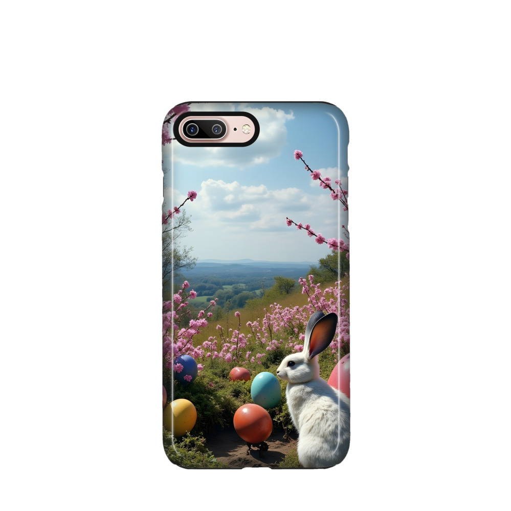 iPhone 8 Plus Hybrid (Kunststoff / Gummi) Hülle Osterhase im Frühling - Blau